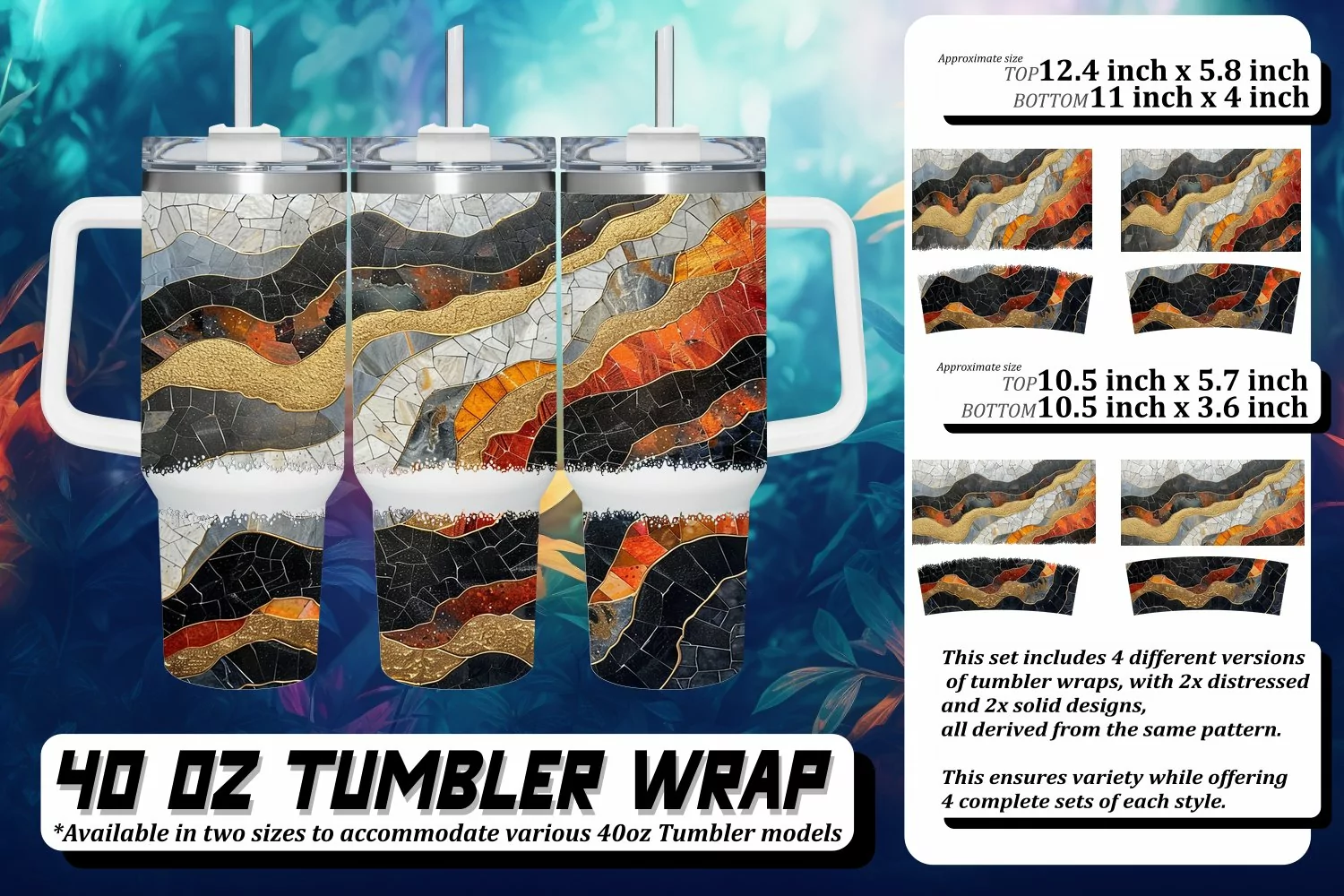This set includes 4 different versions of tumbler wraps, with 2x distressed and 2x solid design,