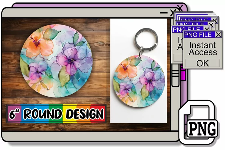 Flower Pattern Flower Watercolor Abstract Pattern Watercolor Flower Png Keychain Sublimation Sublimation Ornaments Valentines Keychain Abstract Keychain Design Flower Keychain Png Round Ornaments Design