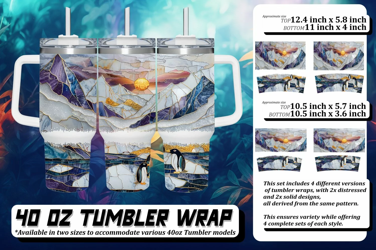 This set includes 4 different versions of tumbler wraps, with 2x distressed and 2x solid design,