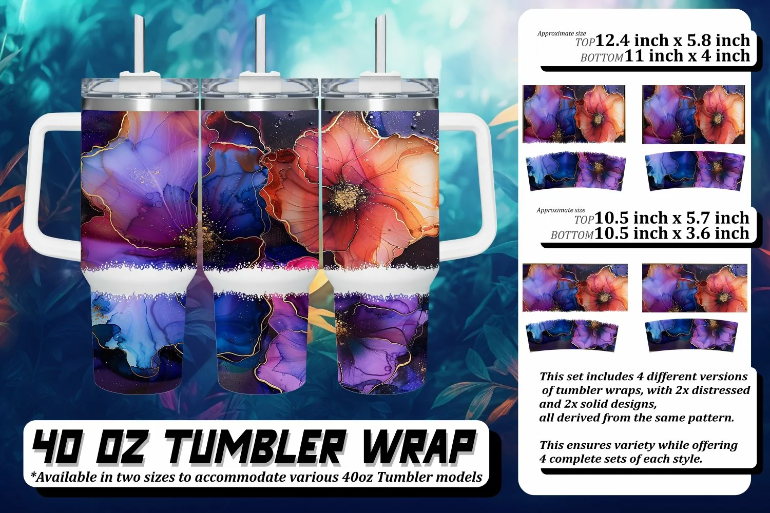 This set includes 4 different versions of tumbler wraps, with 2x distressed and 2x solid design,