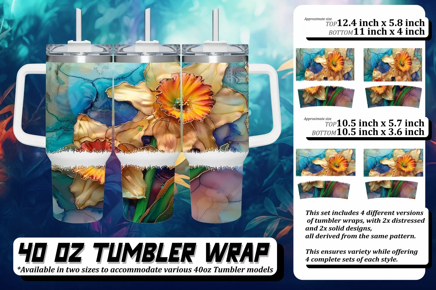 This set includes 4 different versions of tumbler wraps, with 2x distressed and 2x solid design,