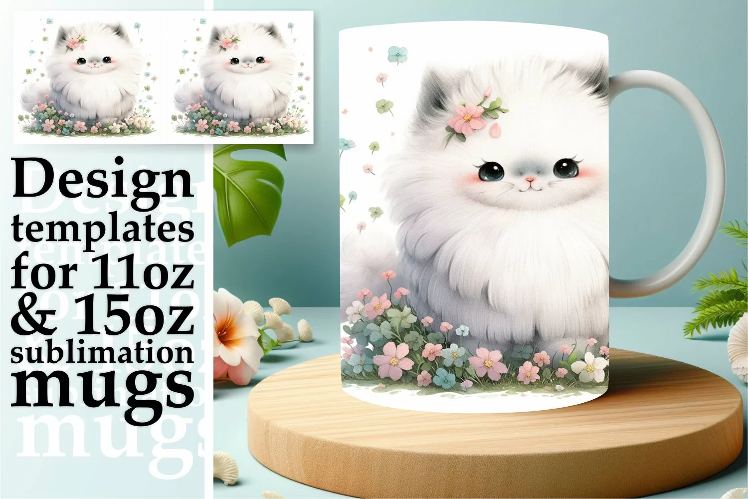 Spring Blossom Cat Mug Wrap - Watercolor Sublimation example image 1