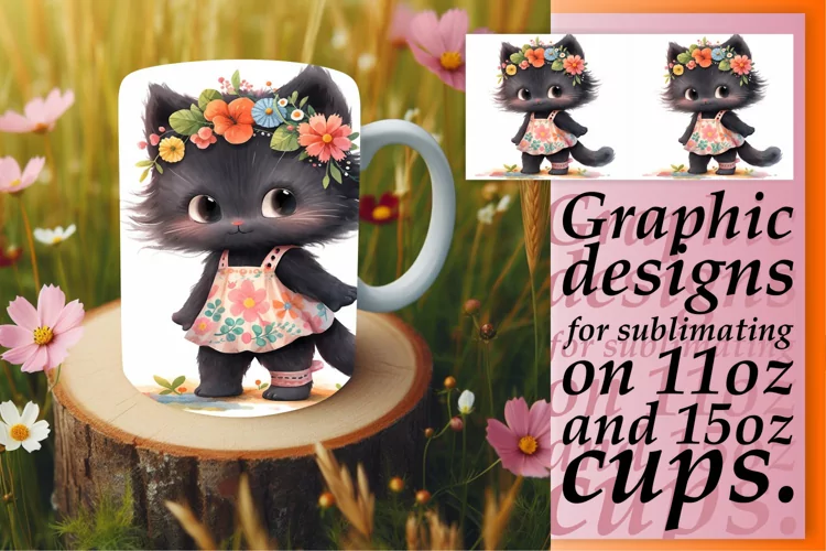 Similar Design Products to Blossom Beauty Cat Watercolor Mug Wrap - Whimsical Spring