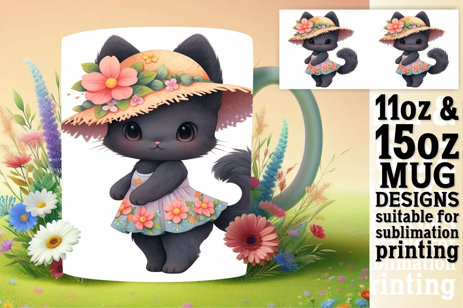Color Burst Cat Watercolor Mug Wrap - Spring Delight example image 1