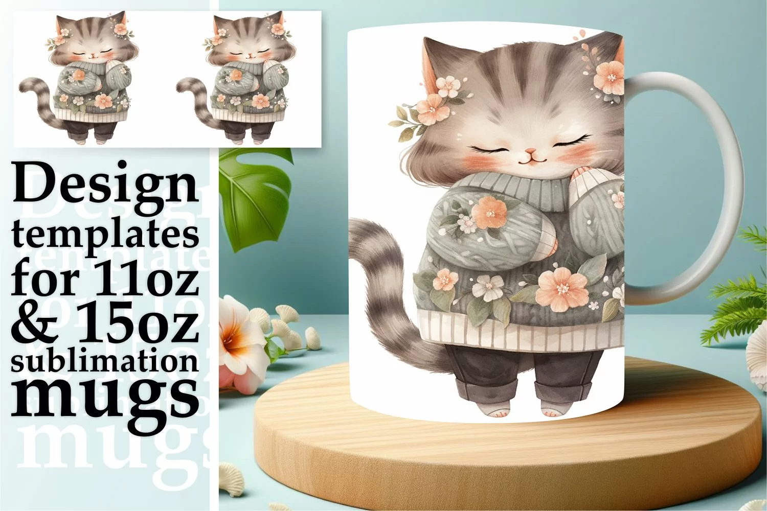 Coffee Mug Watercolor Animals Cat Lover Mug Sublimation Design Sublimation Mug Wrap Sublimation Coffee Cup Boho Flower Sublimation Cat Mug Wrap Animals Sublimation Png Dtf Print