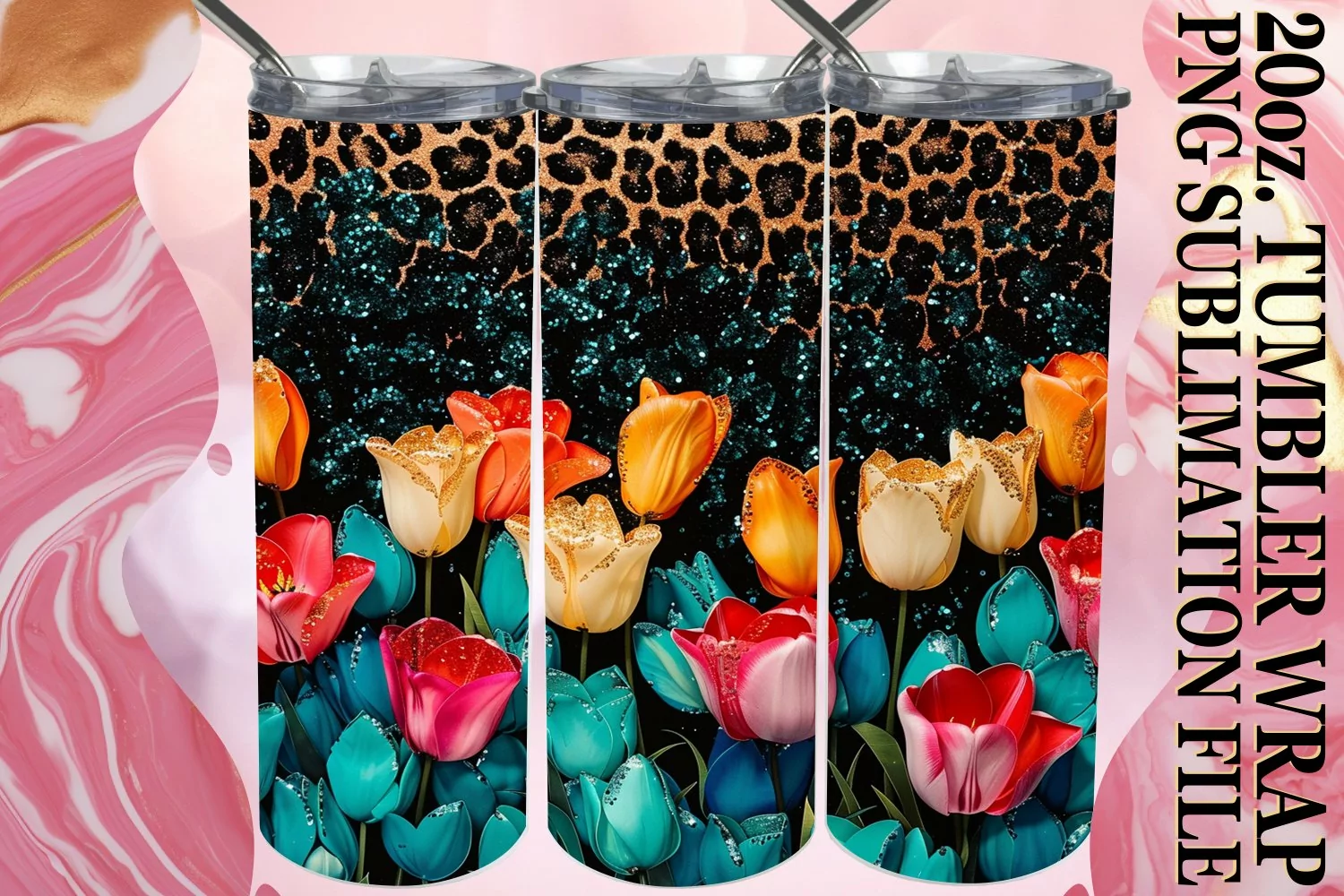 Flower Pattern Glitter Pattern Watercolor Png Leopard Pattern Png Digital Sublimation File 20oz Tumbler Wrap Watercolor Tumbler Wrap Flower Tumbler Wrap Leopard Prints Png Skinny Sublimation Digital Download