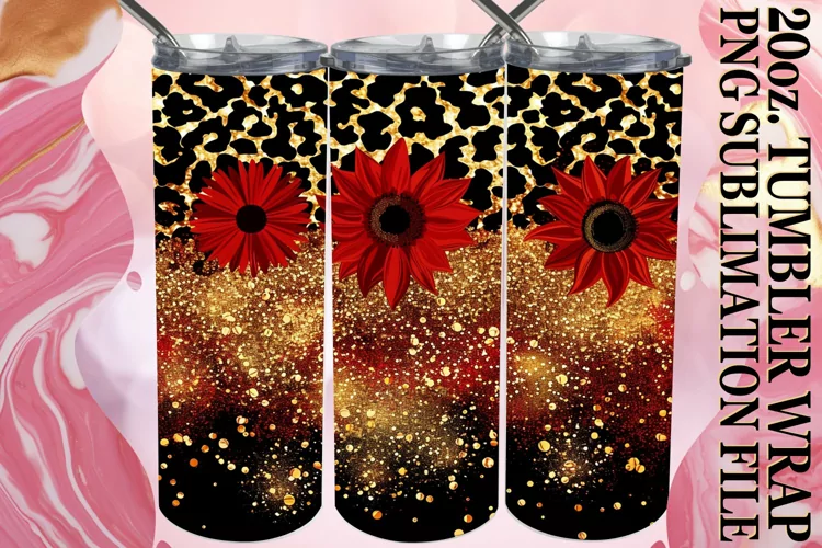 Glitter Flower & Leopard Tumbler Wrap - Sparkle Magic