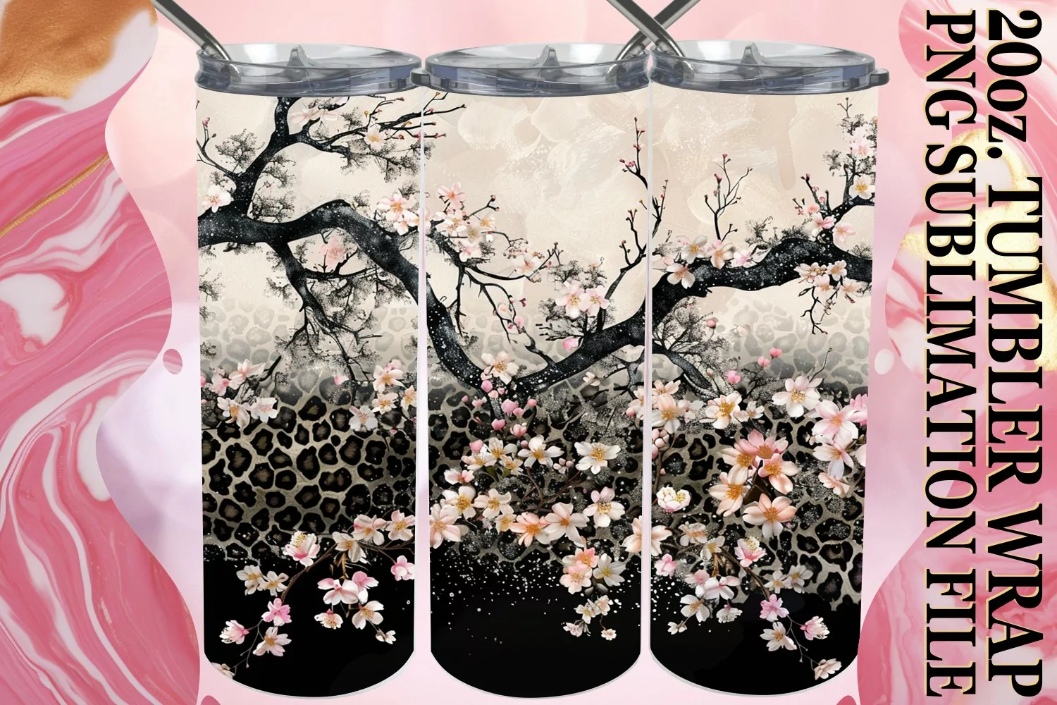 Similar Design Products to Floral Leopard Print Tumbler Wrap - Glittery Blossom