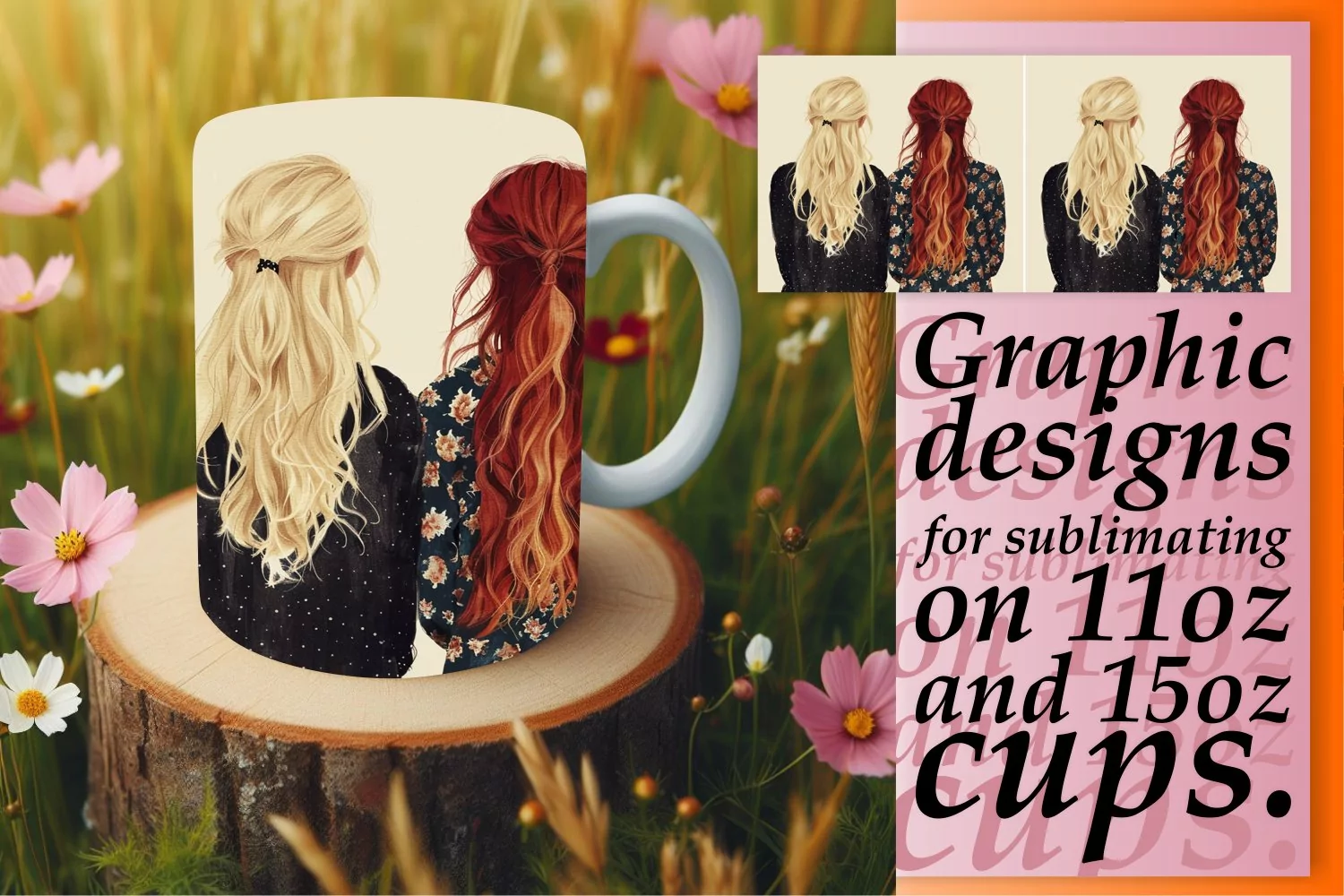 Chic Watercolor Girls Squad Mug Wrap: 11oz 15oz