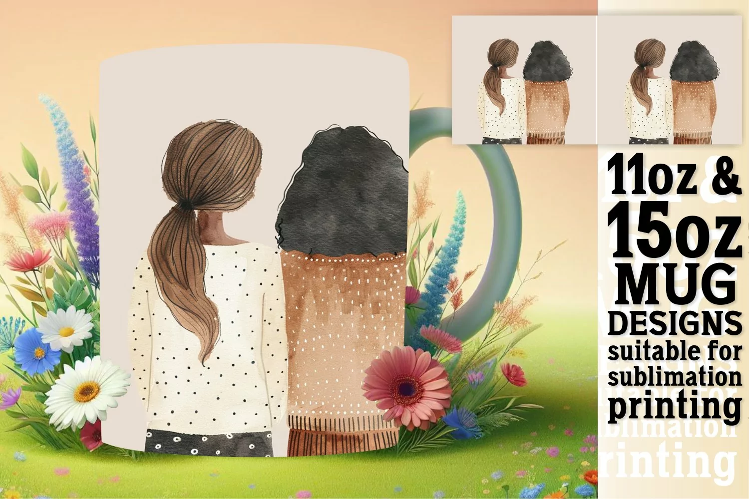 Floral Watercolor Girlfriends Mug Wrap: 11oz 15oz example image 1