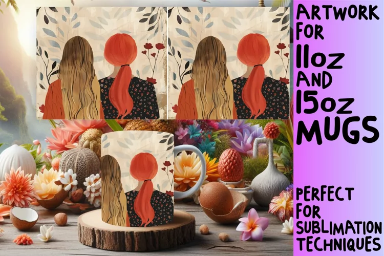 Similar Design Products to Vibrant Whimsical Watercolor Girls Mug Wrap: 11oz 15oz