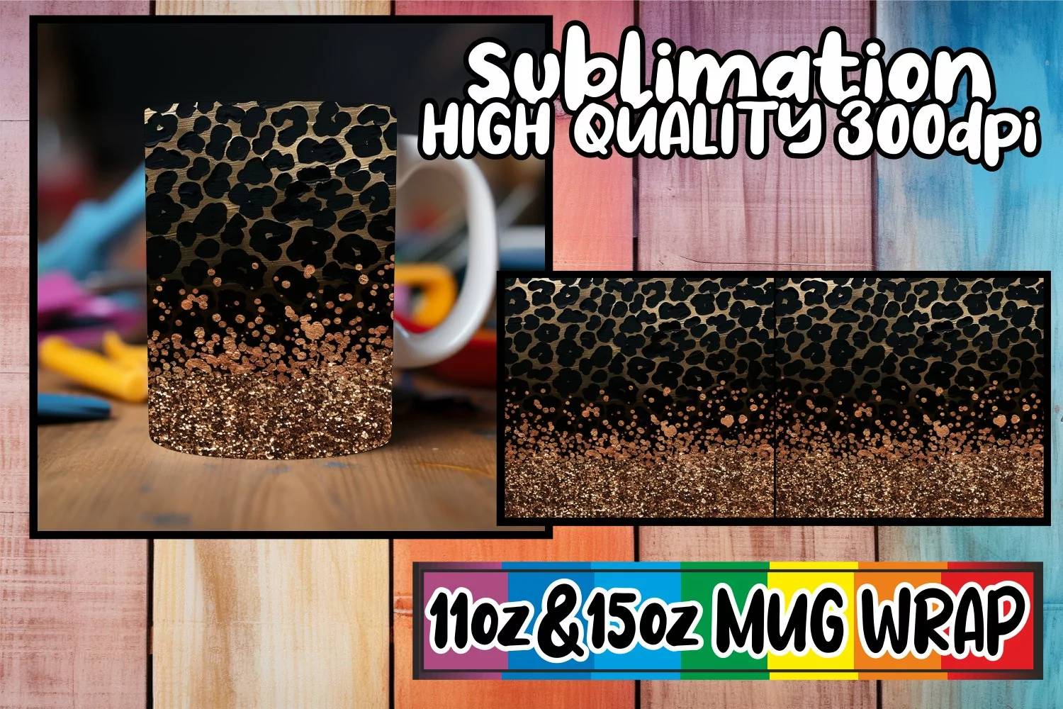 Coffee Mug Gift For Her Mug Sublimation Design Sublimation Mug Wrap Sublimation Coffee Cup 15oz Mug Wrap Leopard Prints Png Dtf Print Glitter Pattern Mug Wrap Leopard Prints Sublimation Design