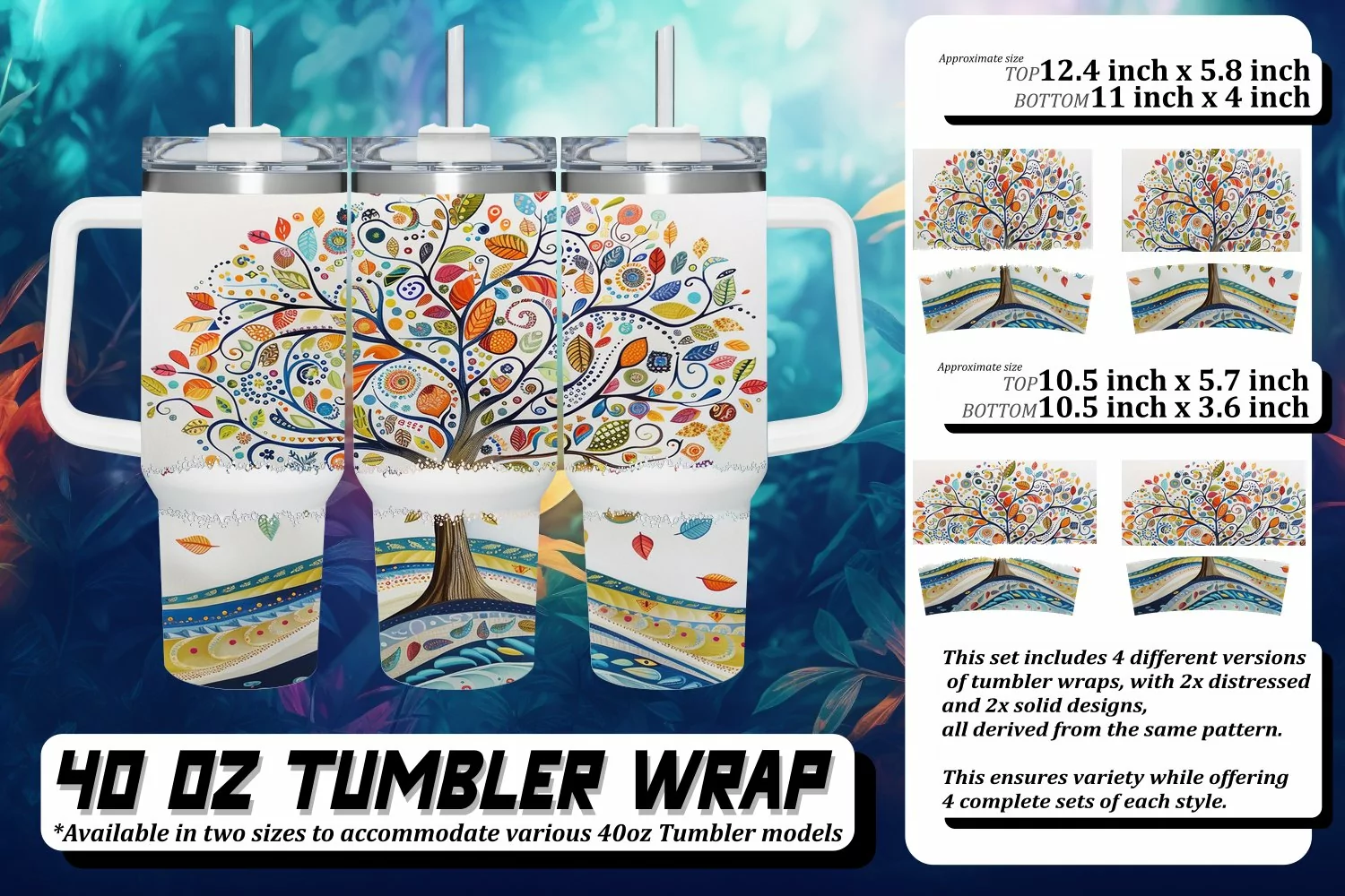This set includes 4 different versions of tumbler wraps, with 2x distressed and 2x solid design,