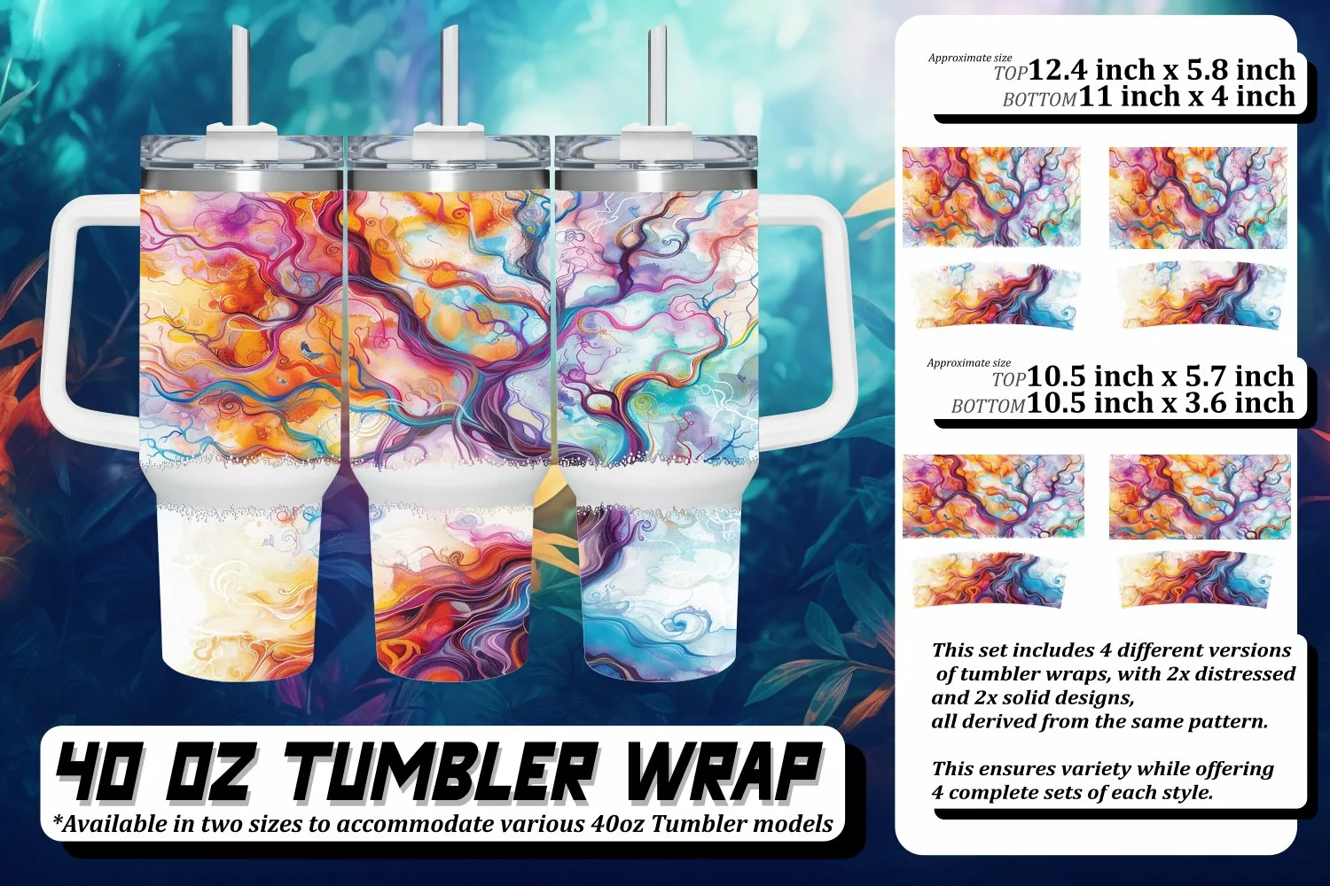 This set includes 4 different versions of tumbler wraps, with 2x distressed and 2x solid design,