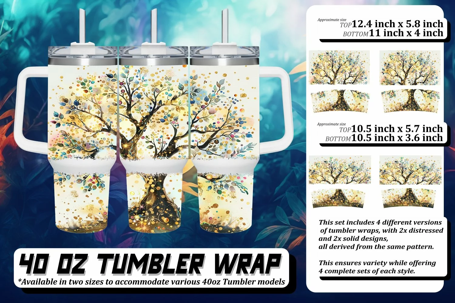 This set includes 4 different versions of tumbler wraps, with 2x distressed and 2x solid design,