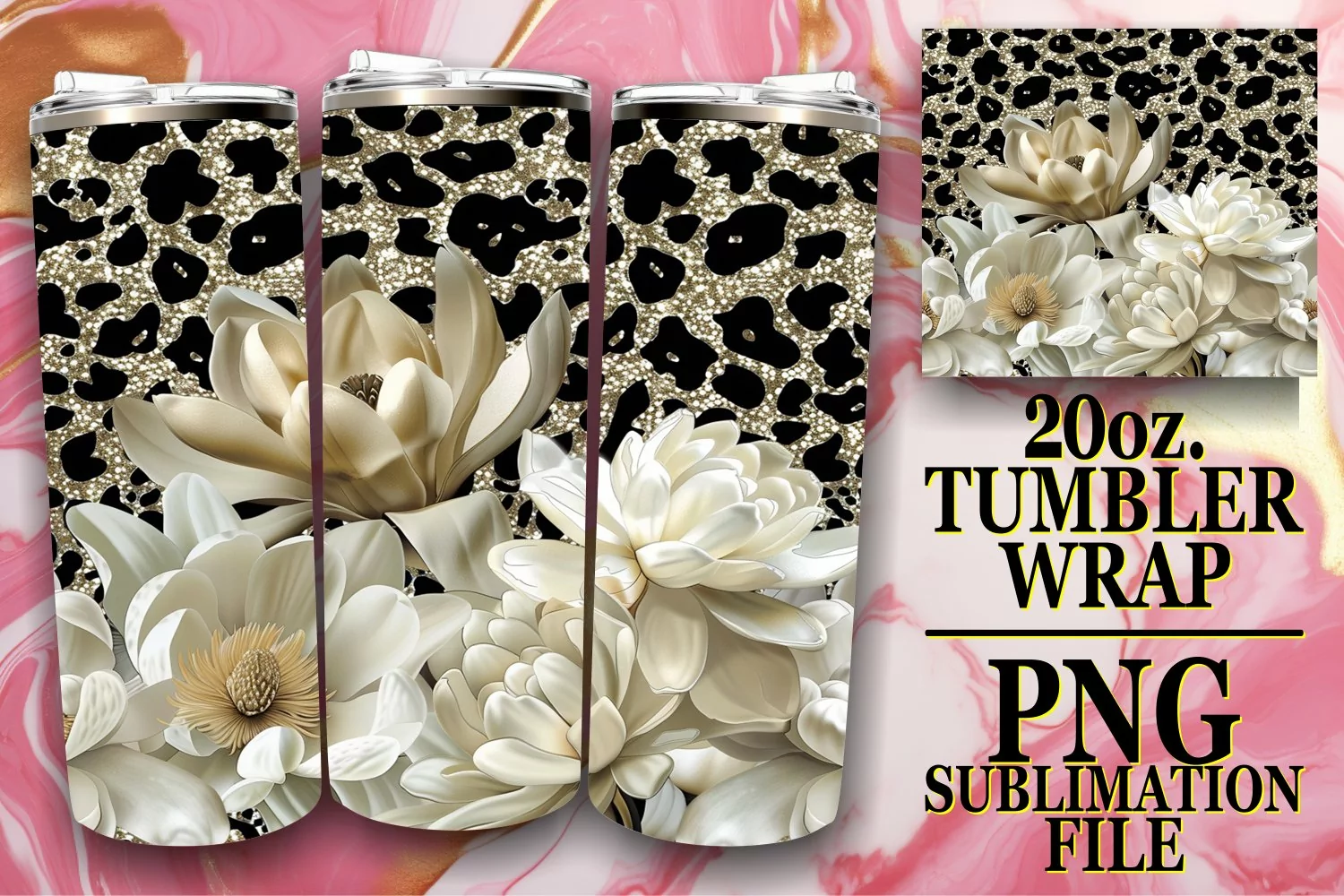Sparkly Leopard Flower Tumbler Wrap: Sublimation - 20oz example image 1