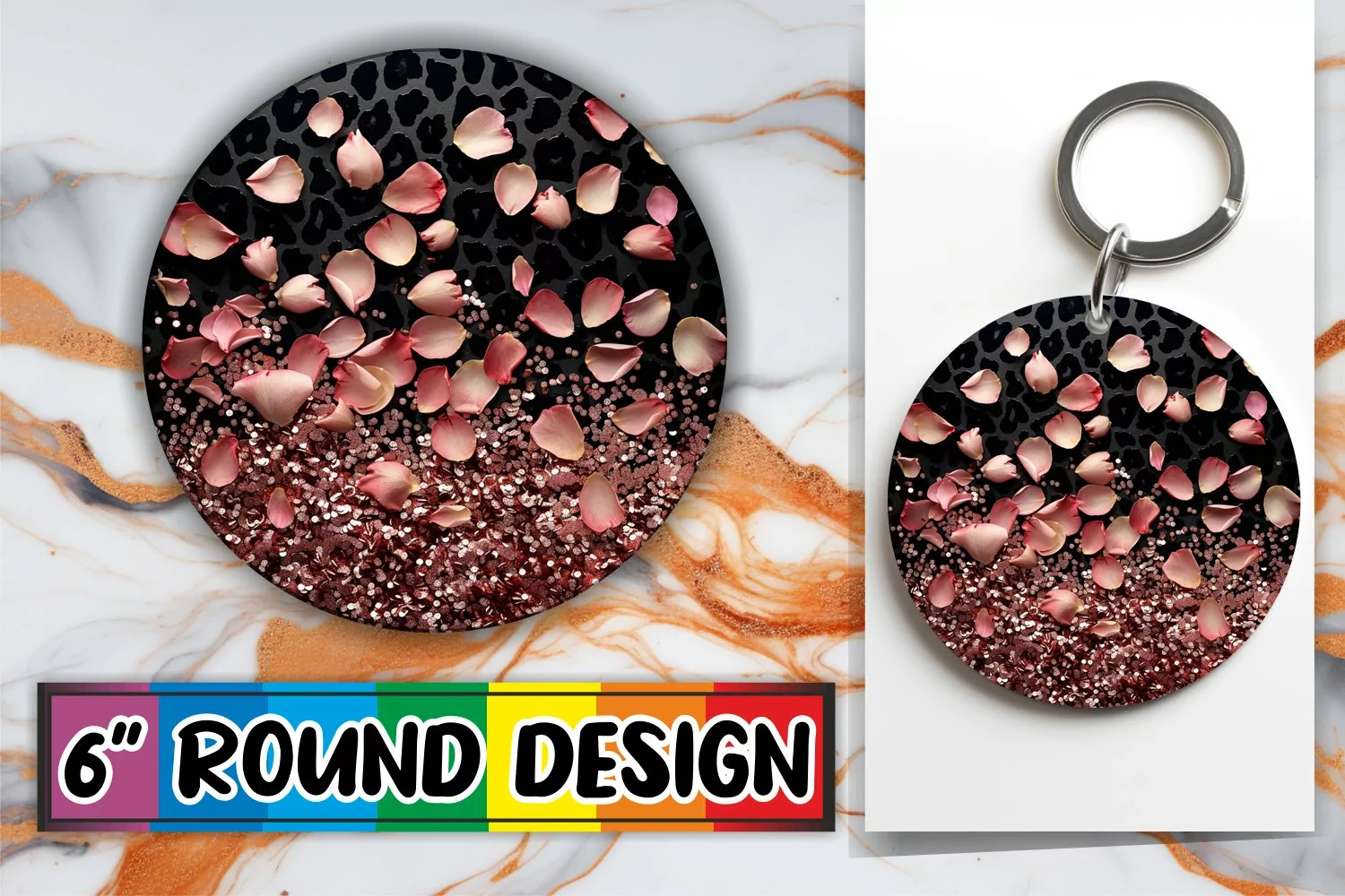 Sparkle Petal Leopard Sublimation Circle: Keychain, Coaster