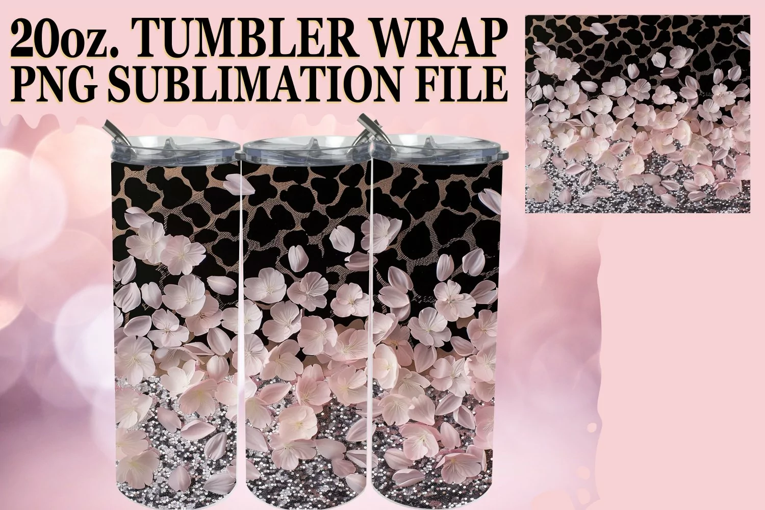 Shiny Floral Leopard Tumbler Graphic: Sublimation - 20oz example image 1