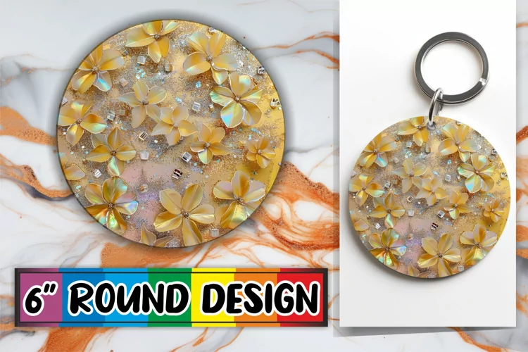Glittering Blossom Delight Sublimation Circle: Keychain, Coa