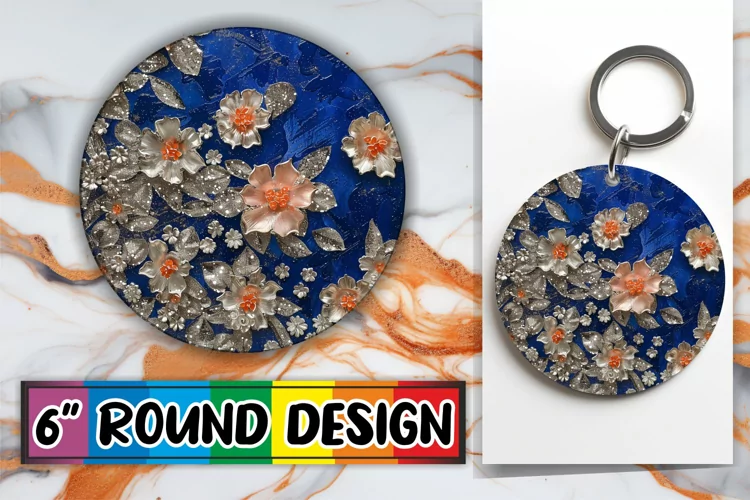 Radiant Glitter Blossom Sublimation Circle: Keychain, Coaste