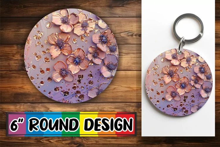 Radiant Glittery Floral Sublimation Circle: Keychain, Coaste