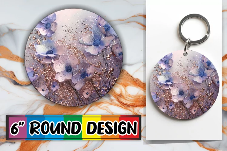 Blossoming Sparkle Leopard Sublimation Circle: Keychain, Coa