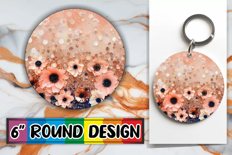 Sparkling Floral Sparkle Sublimation : Keychain, Coaster