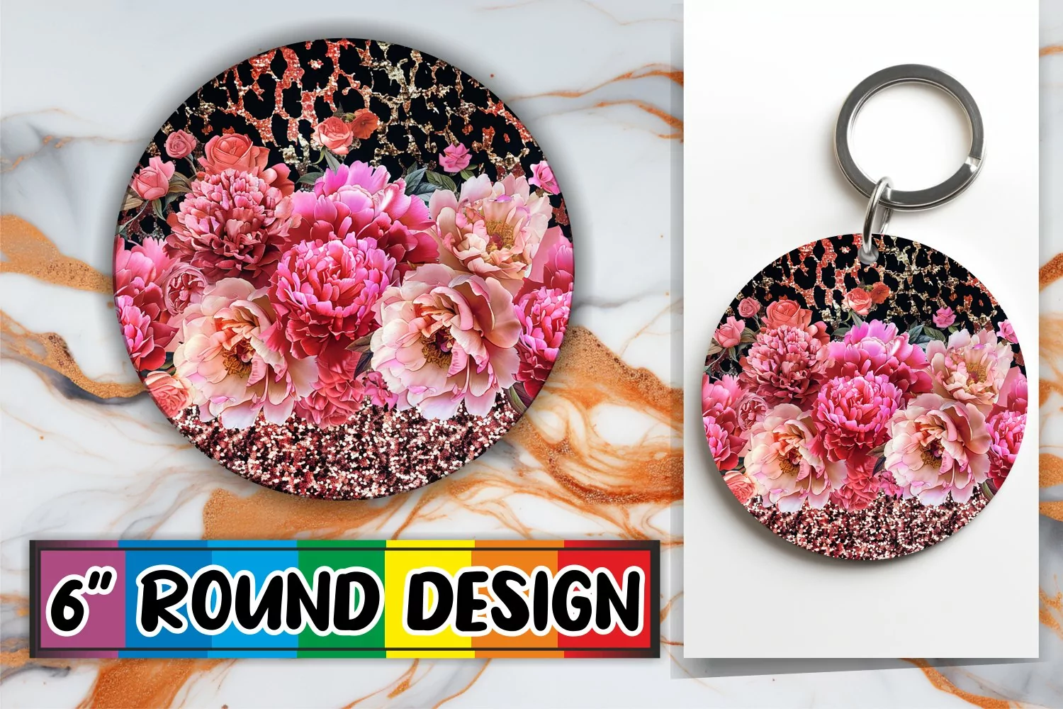 Blossoming Floral Delight Sublimation : Keychain, Coaster
