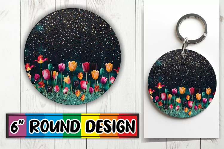 Similar Design Products to Shimmering Glittery Blossom Sublimation : Keychain, Coaster