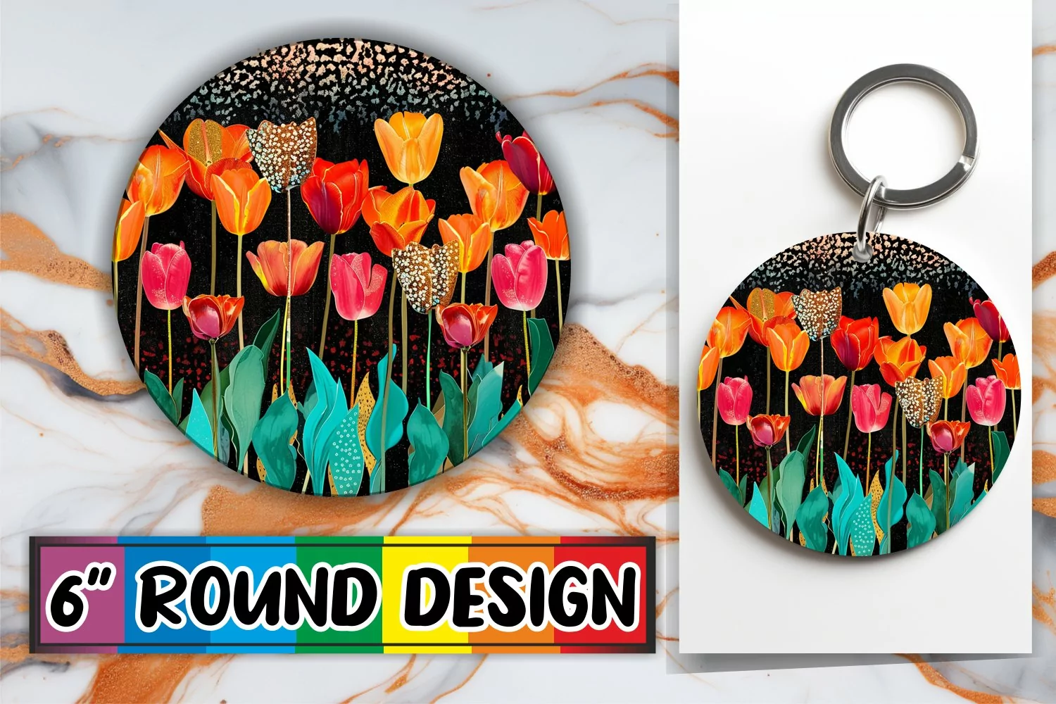 Similar Design Products to Glittering Blossom Sparkle Sublimation Circle: Keychain, Coa