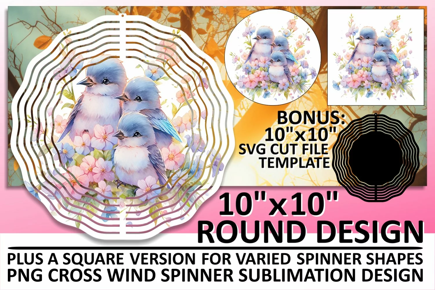 Whimsical Avian Spinners: Watercolor Design
