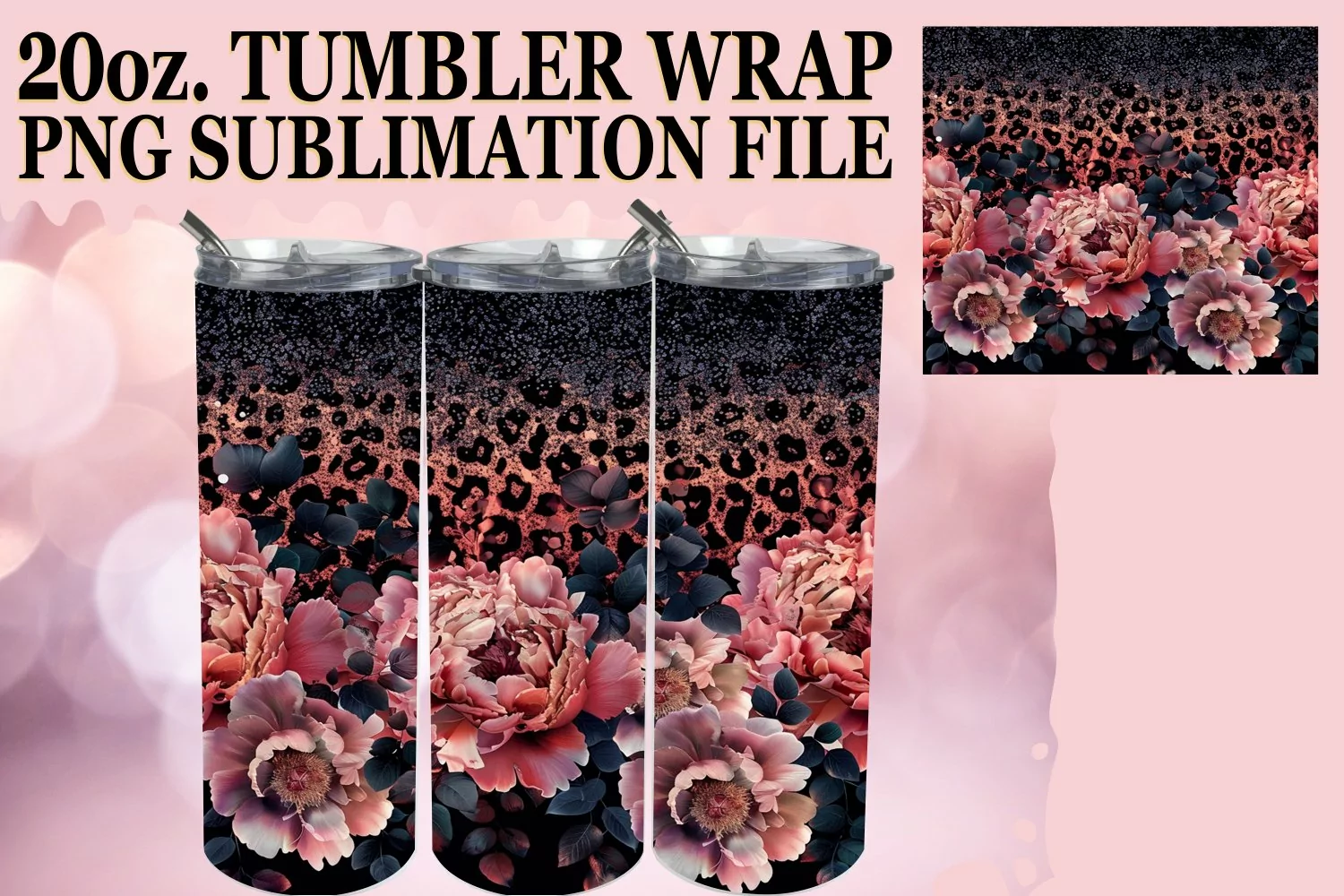 Glittery Floral Leopard Tumbler Graphic: Sublimation - 20oz example image 1