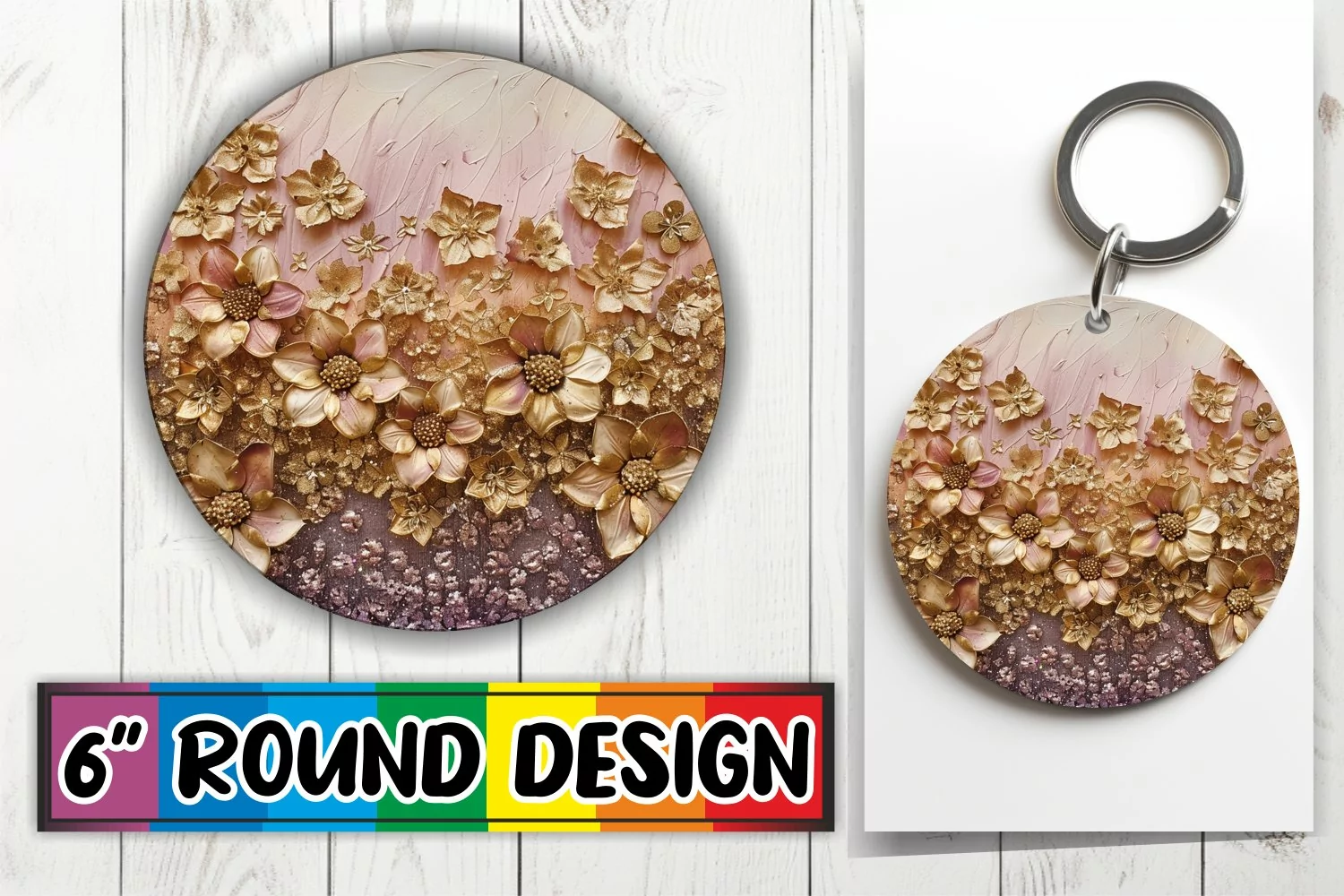 Shimmering Floral Sparkle PNG Sublimation Circle: Keychain, example image 1