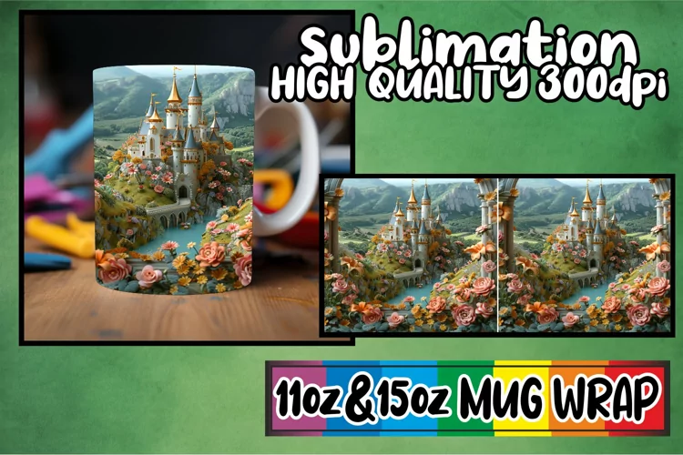 Spring Serenity: 3D Flower Pattern Mug Wrap