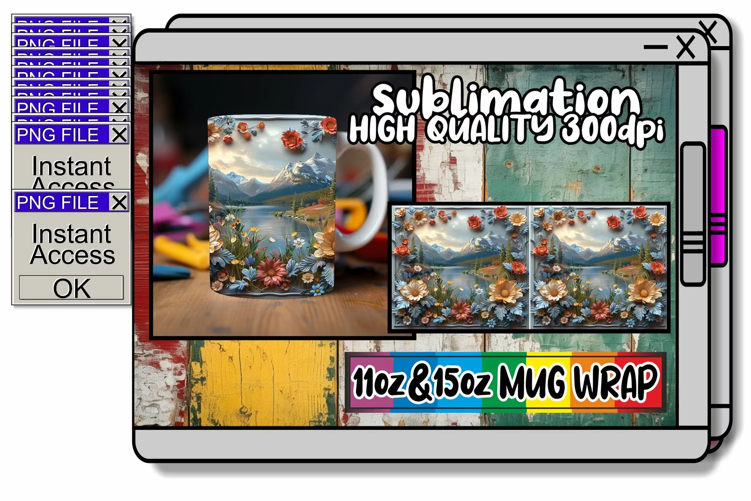Springtime Harmony: 3D Flower Pattern Mug Wrap