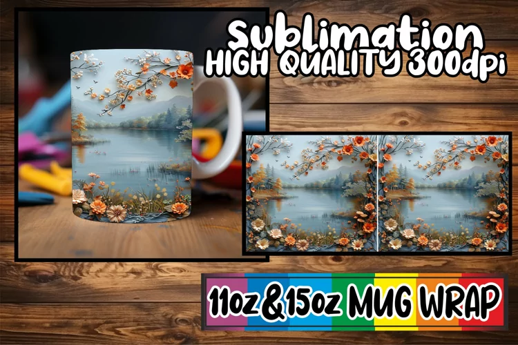 Blossom Retreat: 3D Flower Pattern Mug Wrap
