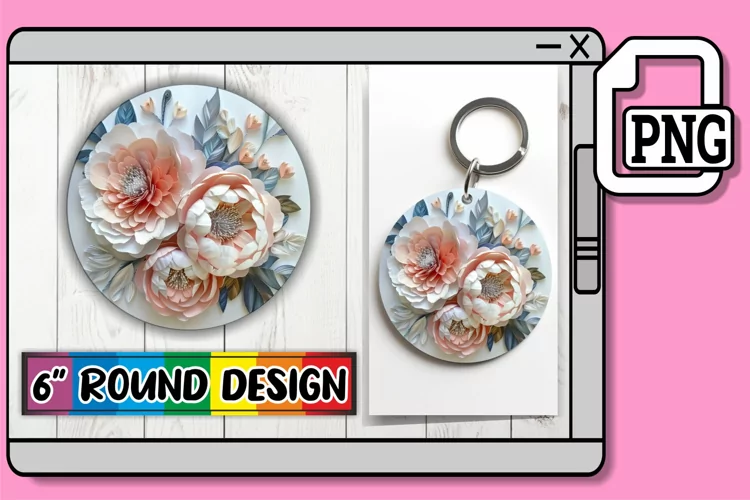 Flower Watercolor Watercolor Flower Png Flower Pattern Png Keychain Sublimation Sublimation Ornaments Spring Flower Png Valentines Keychain Spring Keychain Design 3d Flower Png Round Ornaments Design