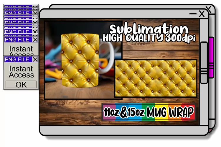 Trendy 3D Quilted Mug Sublimation Design 11oz 15oz