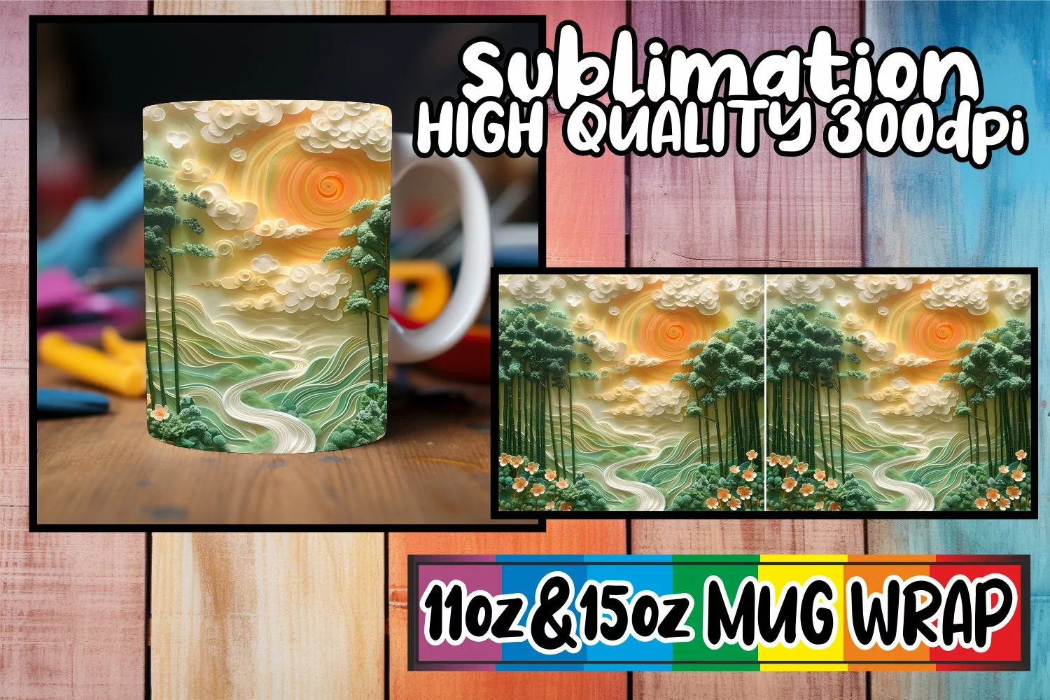 ● Sized to fit 11oz and 15oz Sublimation Mug Wrap