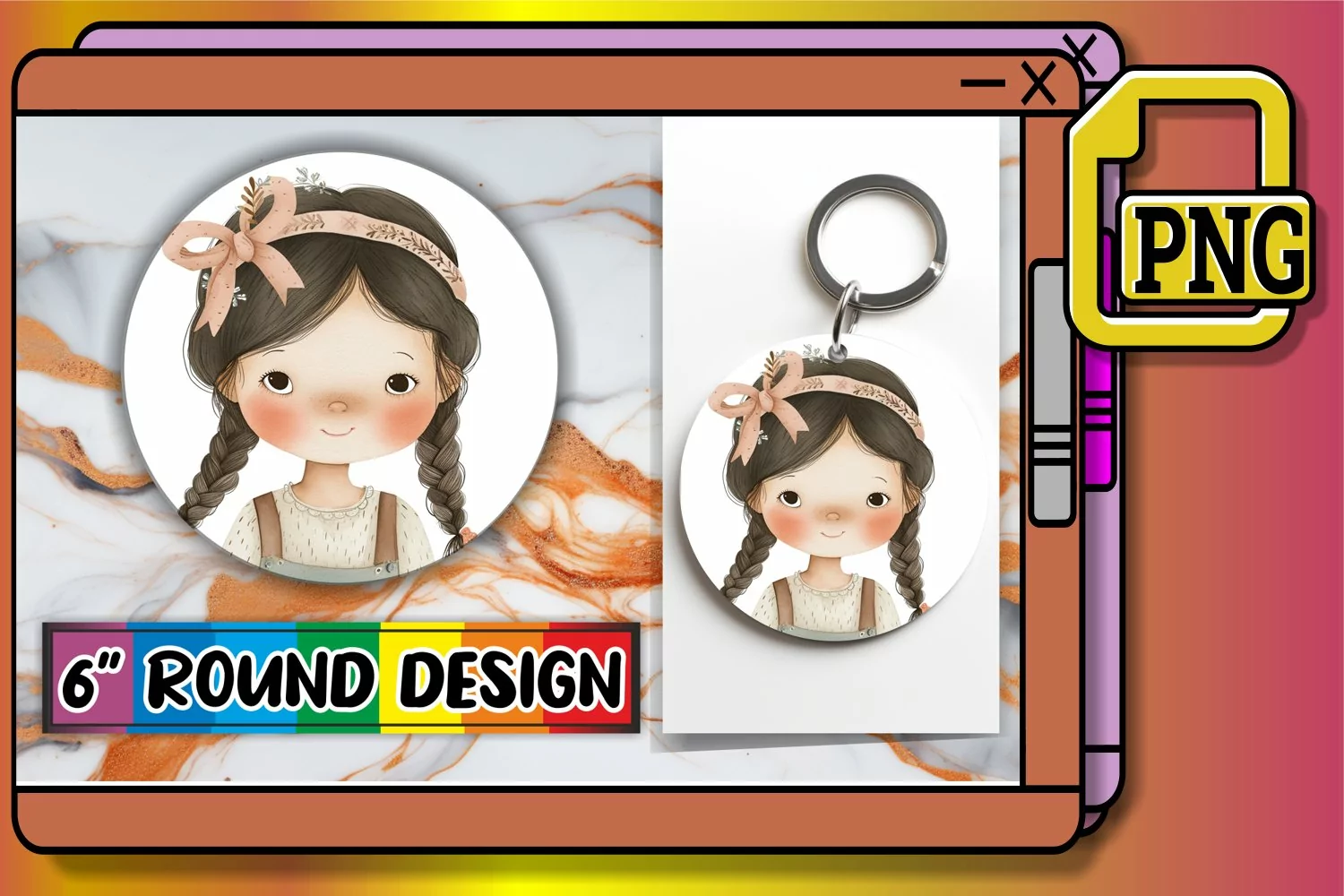 Free-spirited Boho Kids Keychain Print Art PNG Round example image 1