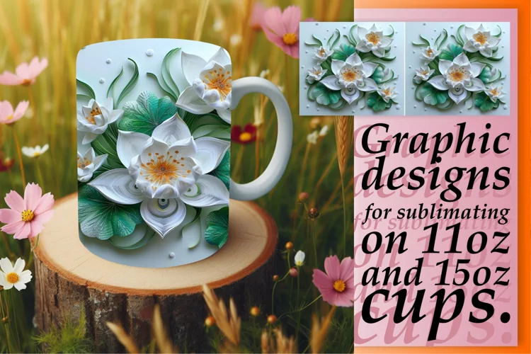 Similar Design Products to Delicate Fresh Whimsical Blossom 3D Mug Wrap 11oz 15oz