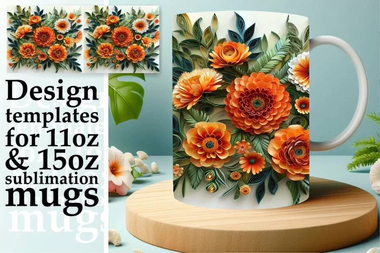 Dreamy Blooming Delicate Floral 3D Mug Wrap Design 11oz example image 1