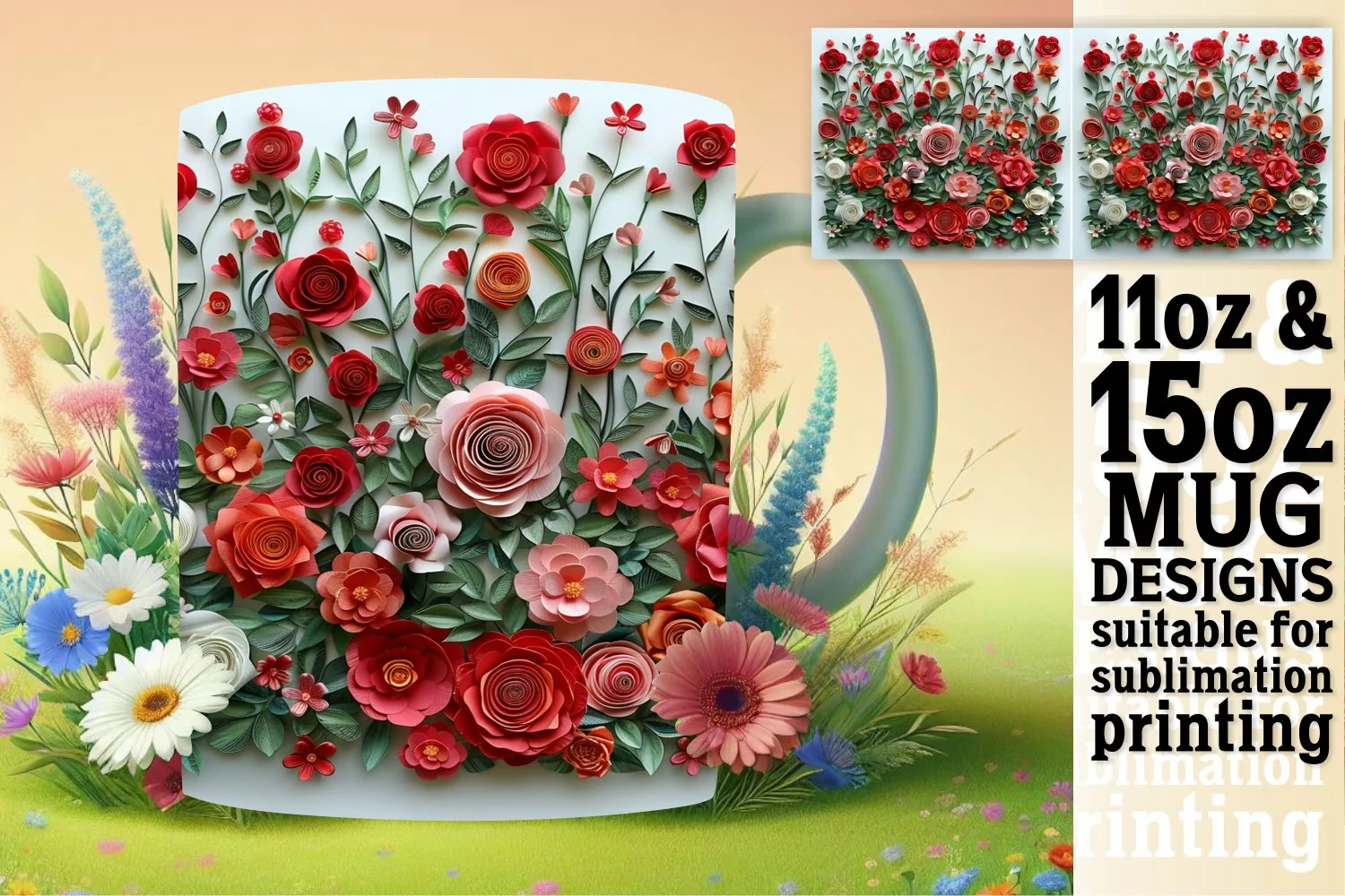 Colorful Blooming Flower 3D Mug Wrap Sublimation 11oz 15oz