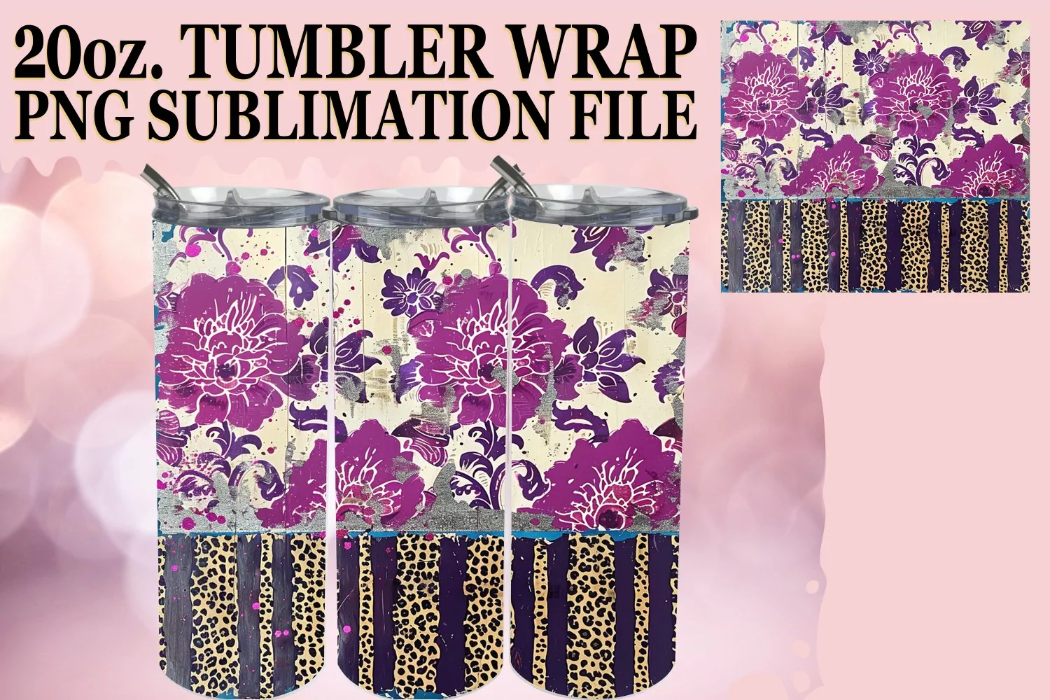 Flower Pattern Glitter Pattern Watercolor Png Leopard Pattern Png Digital Sublimation File 20oz Tumbler Wrap Watercolor Tumbler Wrap Flower Tumbler Wrap Leopard Prints Png Skinny Sublimation Digital Download