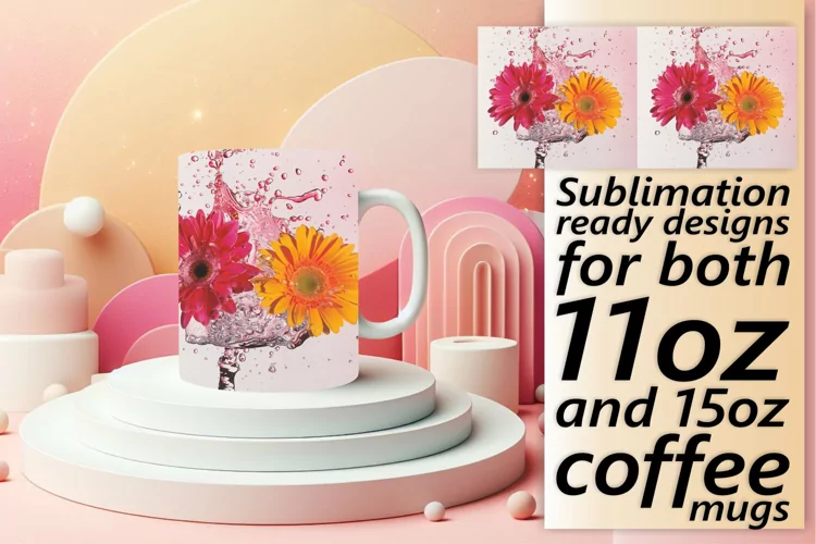 Tranquil Tide: Floral Water Design Mug Wrap 11oz 15oz