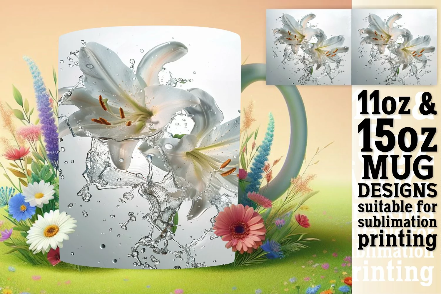 Blossom Harmony: Sublimation Splash Mug Wrap 11oz example image 1