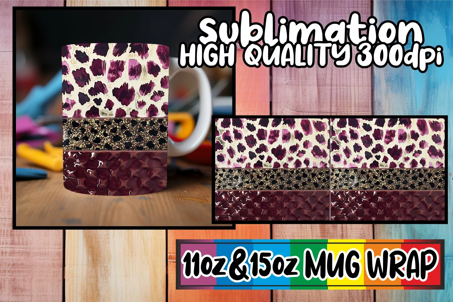 Coffee Mug Gift For Her Mug Sublimation Design Sublimation Mug Wrap Sublimation Coffee Cup 15oz Mug Wrap Leopard Prints Png Dtf Print Glitter Pattern Mug Wrap Leopard Prints Sublimation Design