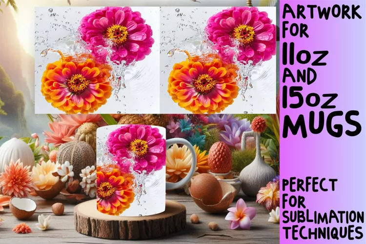 Serene Bloom: Floral Water Design Mug Wrap 11oz 15oz example image 1