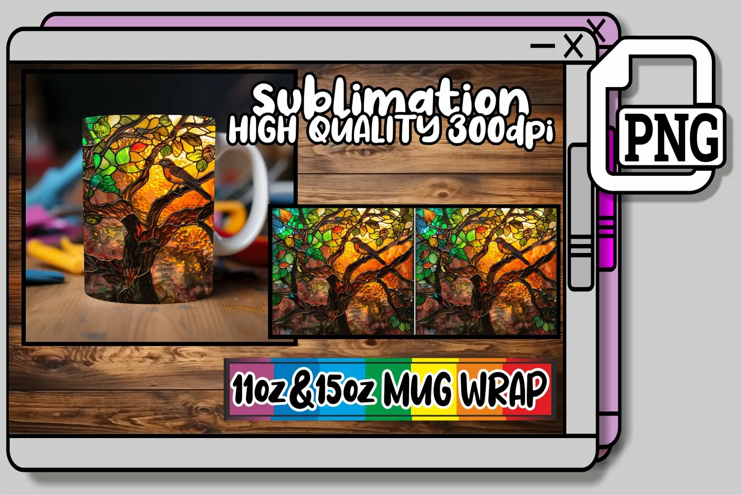 Whimsical Stained Glass Mug Wrap Scenes 11oz/15oz example image 1