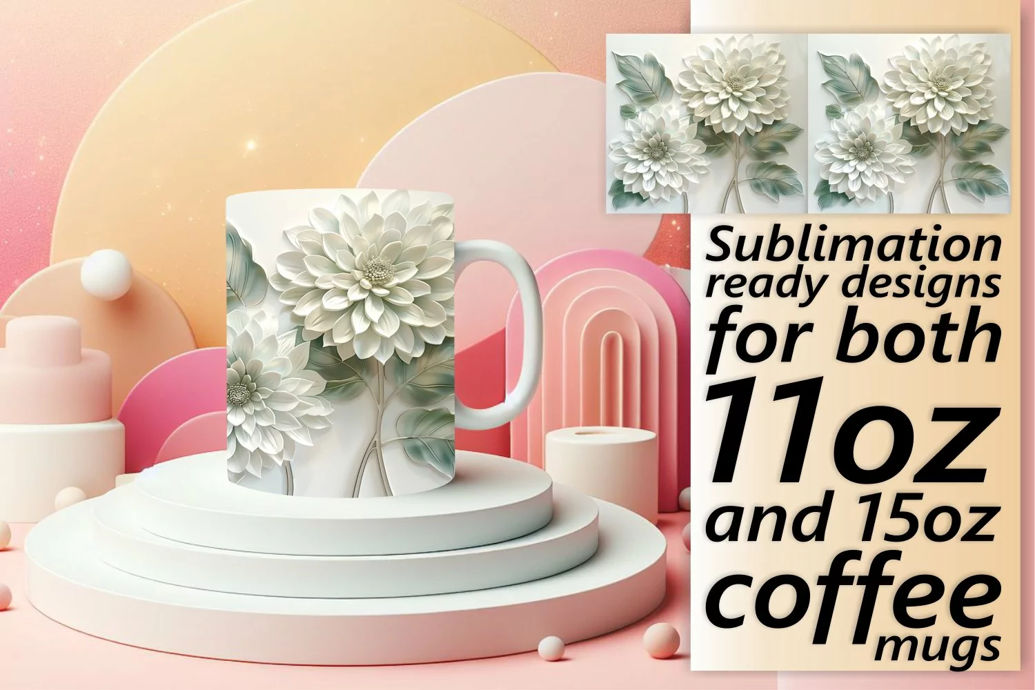 Elegant Floral Radiance: Mug Wrap Sublimation